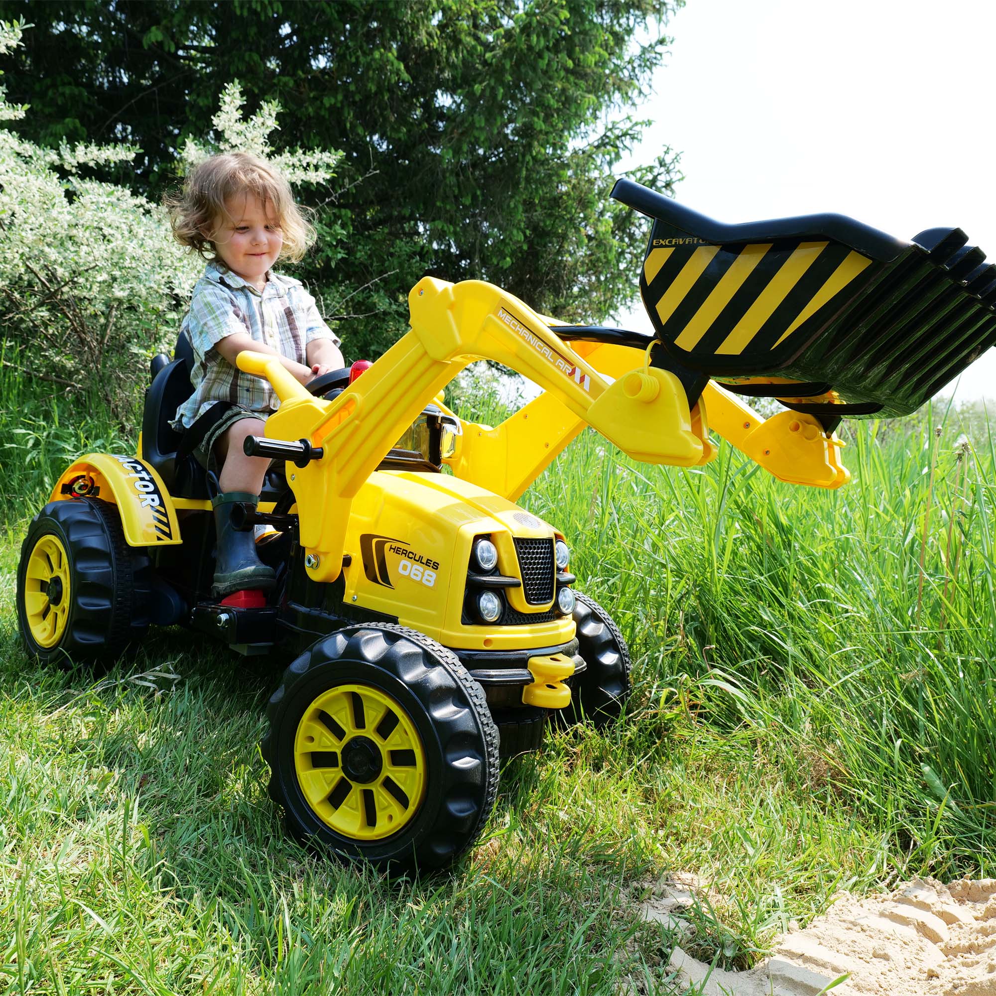 My kids love this tractor. I bought it for my 4 year old for Christmas, and it was the highlight of the holiday for him. It was easy to assemble, the battery life is very good, and it goes really fast on high speed.
