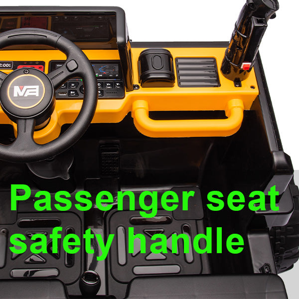 All for kids' safety, this 24v electric car for kids features saftey passenger seat handle, secure your kids and prevent accidental.