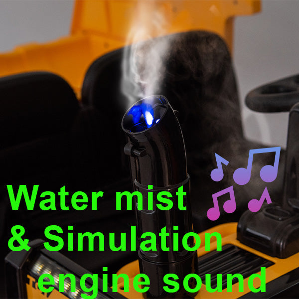 - 【Multifunctional 24v Ride On Dump Truck - Interactive Features】This 24v kids construction vehicle is equipped with an big electric auto-lifting dump bed. Kids can use a toggle switch to control the dump. The complimentary helmet, shovel, and traffic cone. Kids can use additional shovel traffic cones to load snow, leaves, or sand onto the dump truck. It is also equipped with a spray chimney with independent operation. As long as water is added, the spray will be sprayed out. Real engine sound simulator with real engine sound, allowing children to play in an immersive way.