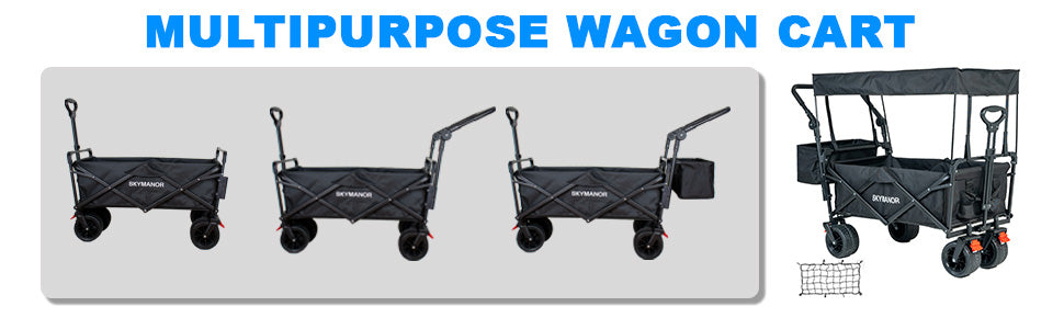 - Wagon Carts Heavy Duty Foldable: Folding up for easy storage at home closet,garage and car trunk,compact and saving space, we also offer a carry-on bag for carrying. can be easily used in all kinds of outdoor activities,such as garden,fishing,camping,shopping,vacation,barbecues or groceries etc. It can also be used as a dog wagon.