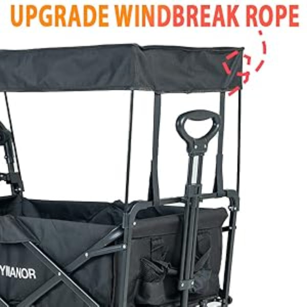 Updated all-terrain collapsible wagon cart, just remove canopy and retract all four canopy poles, fold up canopy and place in extra pocket we provide. Thickened waterproof 600D Oxford protects your kids or pets from rain.